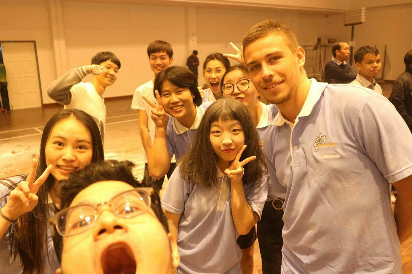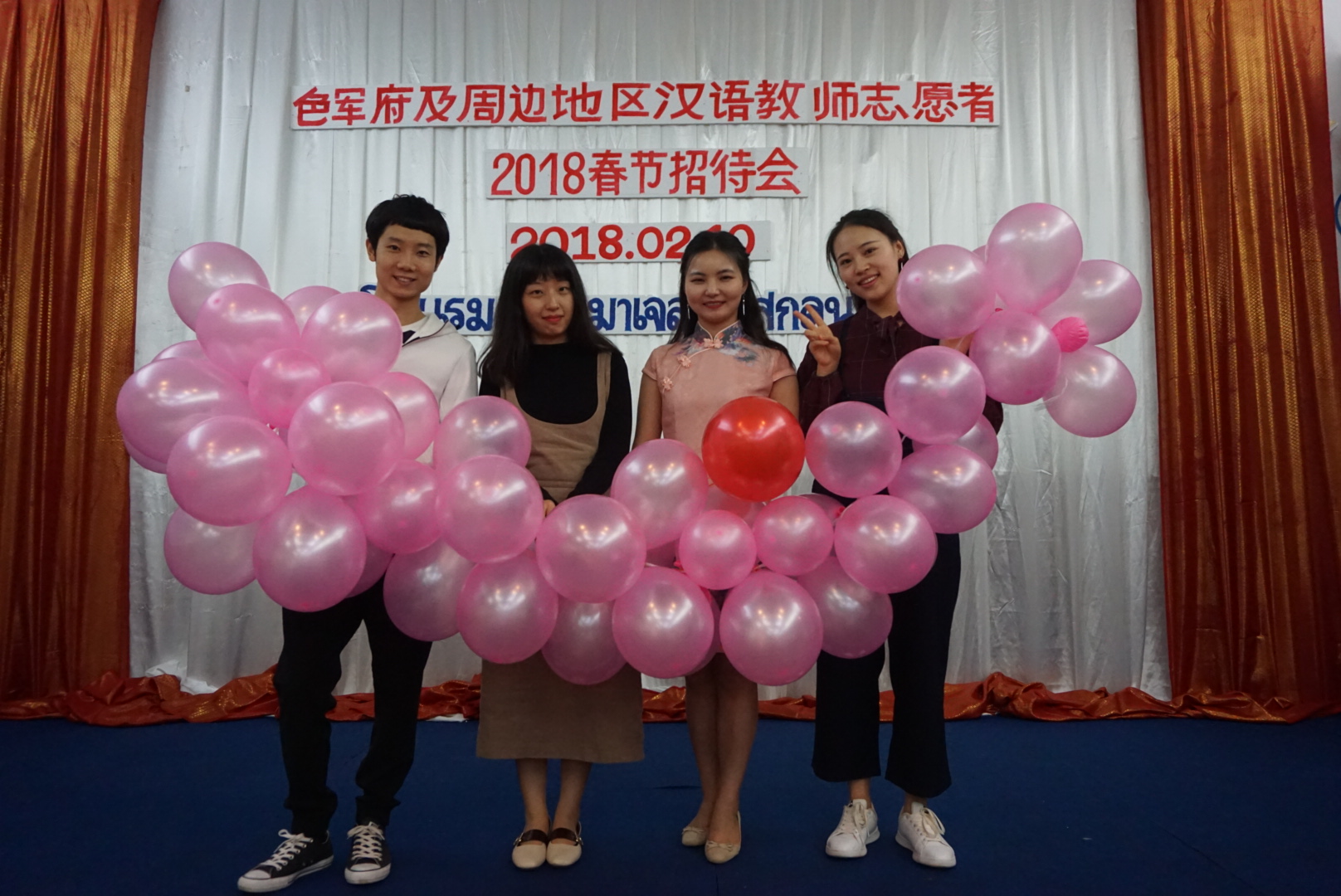 参加泰式广场舞比赛,和学院的泰方老师们一起彩排练习,一起在节拍中释放热情。参加教职工跨年活动,袋鼠跳、夹鸡蛋、竹竿跑、传递爽身粉等游戏舒活了筋骨又令人捧腹大笑,结束时每个人的头发都像染成了灰白色,大家开心地合影,好让时间记住2017年经历过的这个精彩瞬间。参加新学期工作会议,感受着校方对于对外汉语教育工作的支持,特别是听到院长将我们纳入教职工名单,特别念及我们五位志愿者老师的名字时,我的内心非常地感动,感到一种强烈的认可感。参加互换礼物活动,每个人精心准备好礼物,随机排号,随机抽取号码匹配礼物,你可能会收到一对杯子,也可能是三袋大米,神秘的抽奖环节,降临到你身上的也许是一台榨汁机,也许是一个衣架,也许是一枚金戒指,其乐融融又饶有趣味和惊喜。参加集体庆生活动,同一个月份过生日的老师们聚集在一起吹蜡烛、切蛋糕,伴随着生日快乐的祝福,让我不仅为这里充满人情味的制度点个赞。